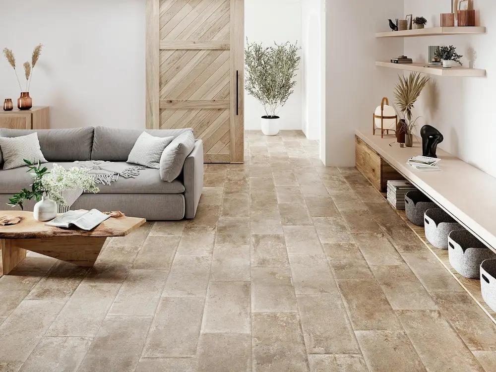 For outdoor flooring, select tiles that provide slip resistance to prevent accidents, especially in areas with water, such as pools and their surroundings. Recommended slip resistance ratings are R10, R11, and R12. R10 is ideal if you have the same tile indoors and outdoors, as it is suitable for both floors.